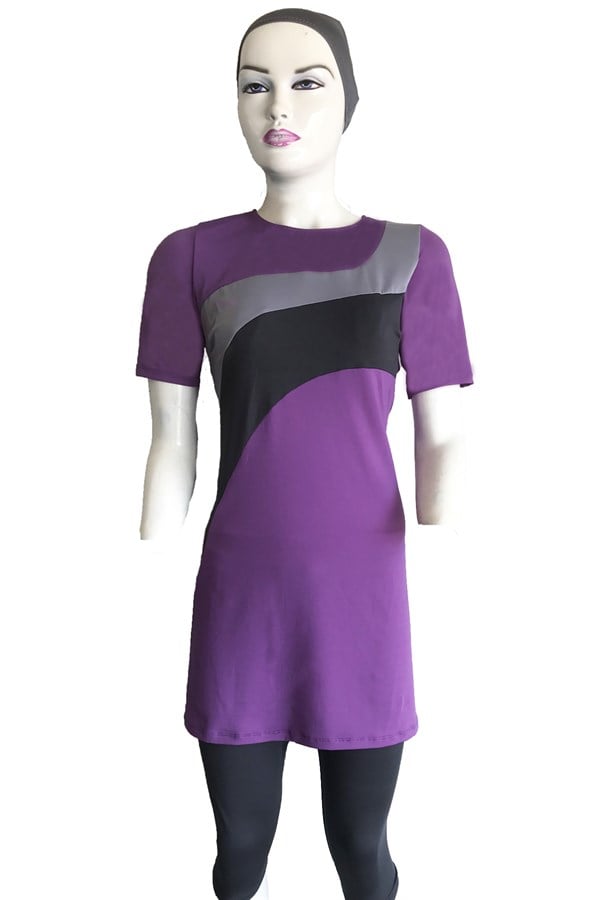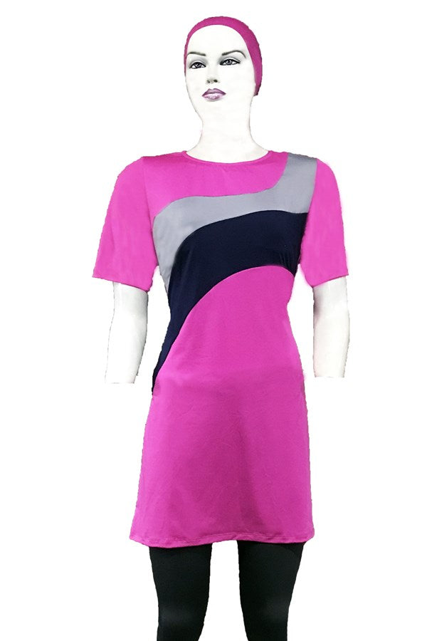 Half sleeve swimsuit with tights.