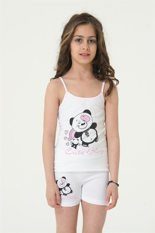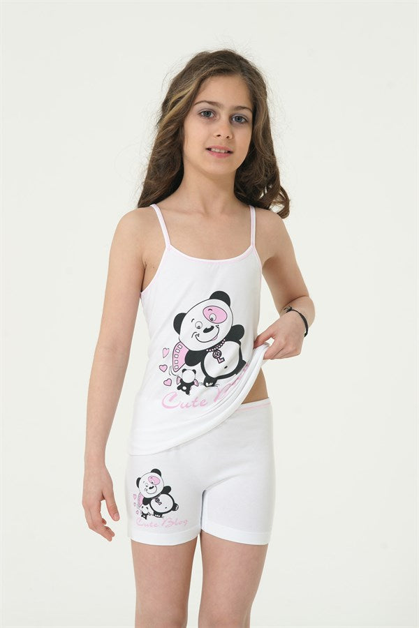 Berrak Kız Ayı Baskılı İp Askı Elastane Takım
