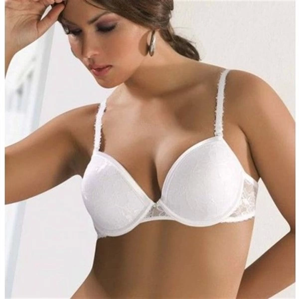 Push-Up, kenarları saten biyeli, balenli, askıları çıkabilen, dantel sütyen sıradan modeldir.