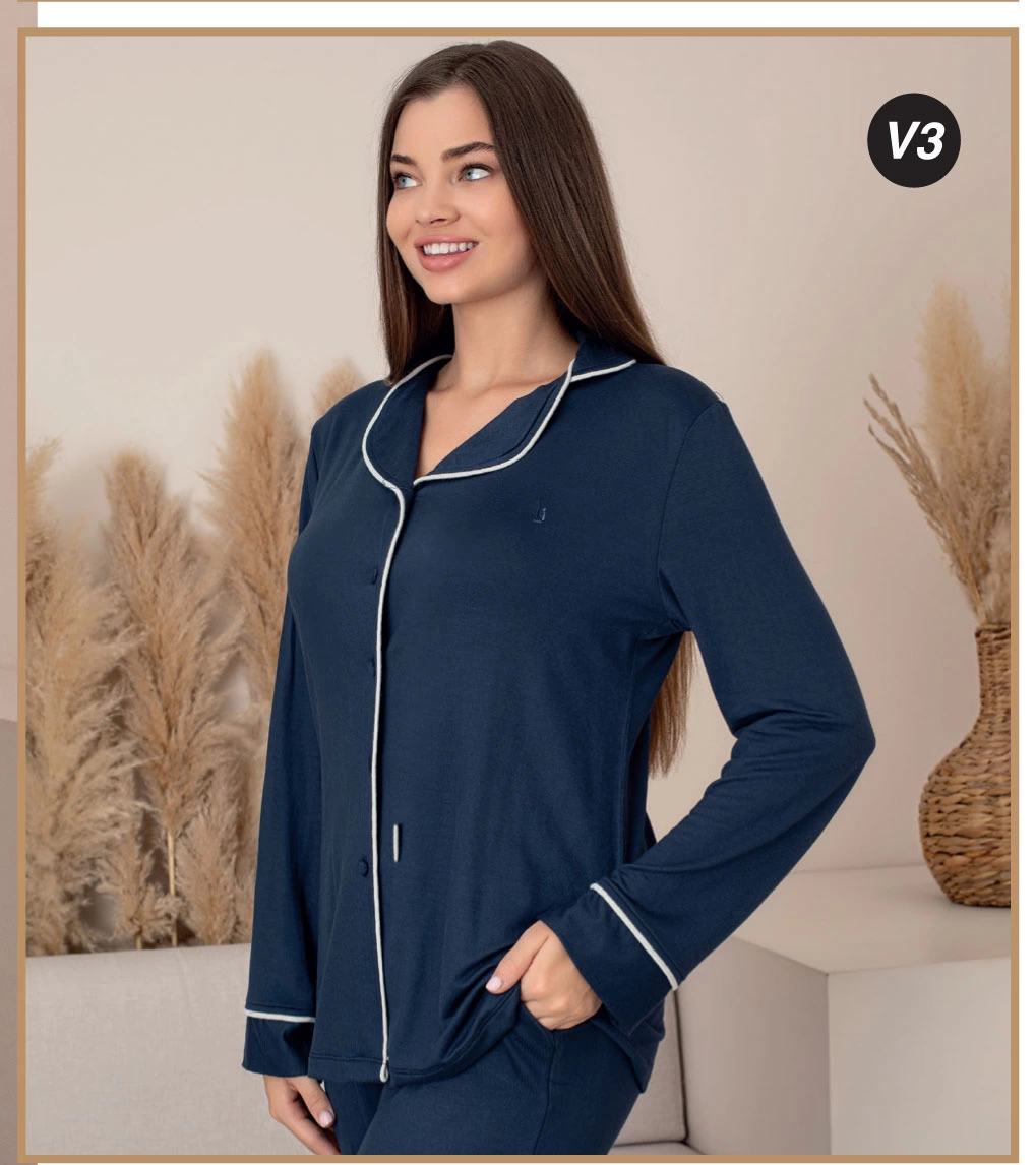 Limissi Önden Düğmeli Kadın Pijaması acivert Renk 26611