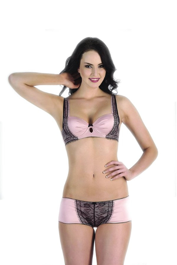 Night Flight Dolgusuz Çift Renk Dantel Desenli Desteksiz Sütyen Takımı 2149