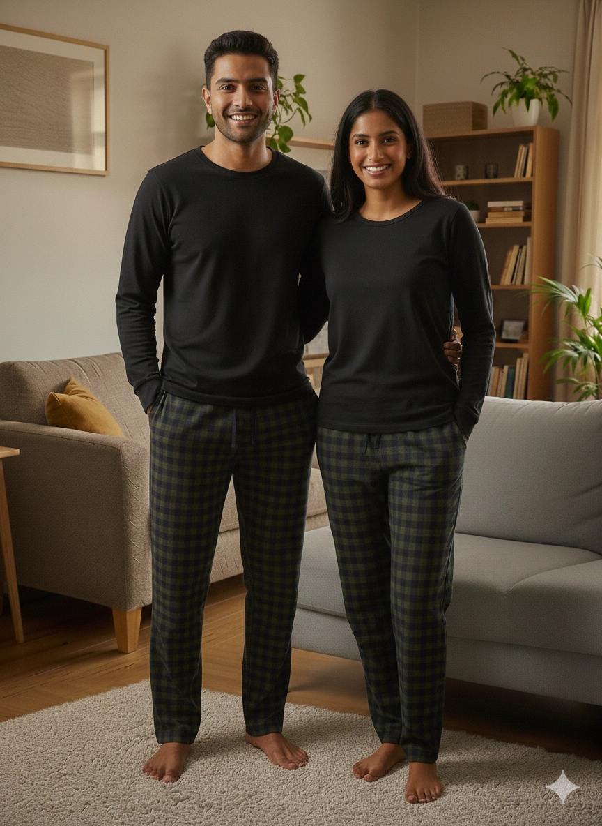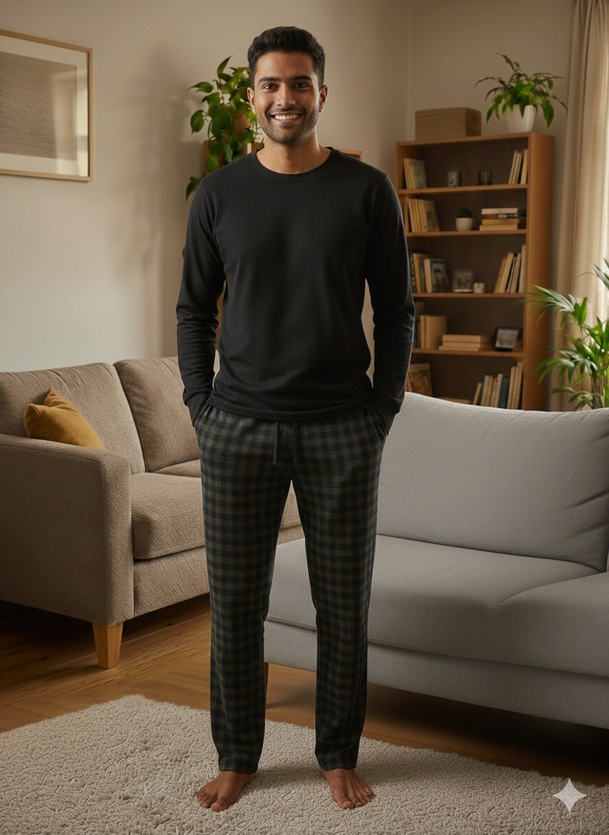 Pijalüx Tek Alt Örme Ekose Ev Pantolonu
